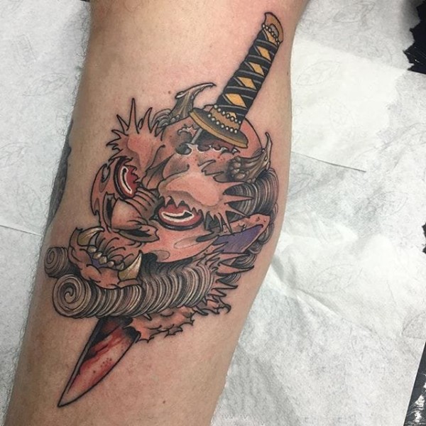 日本图腾纹身图案-彩绘水彩素描描绘的创意日本传统图腾纹身图案