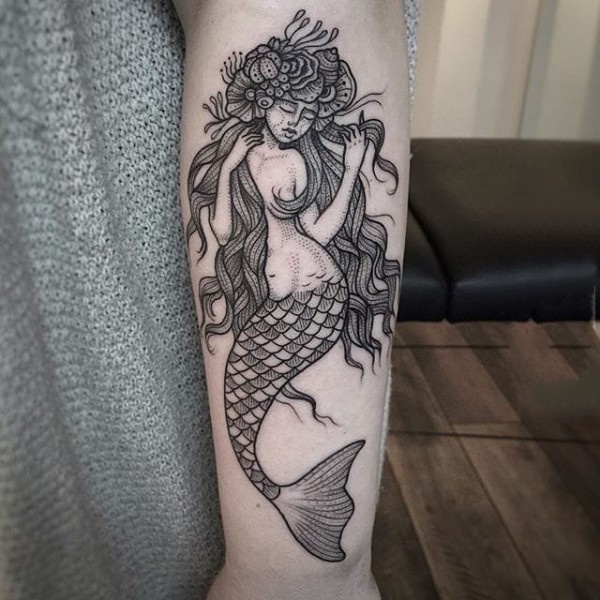 美人鱼纹身图案-彩绘水彩素描创意文艺唯美美人鱼纹身图案