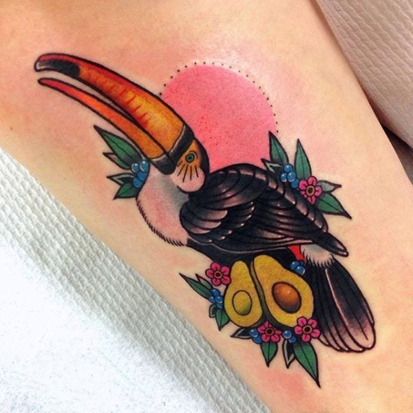 彩绘纹身图案-彩绘水彩的创意文艺霸气大嘴鸟纹身图案