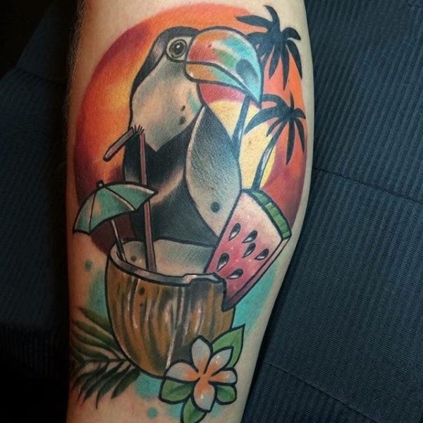 彩绘纹身图案-彩绘水彩的创意文艺霸气大嘴鸟纹身图案