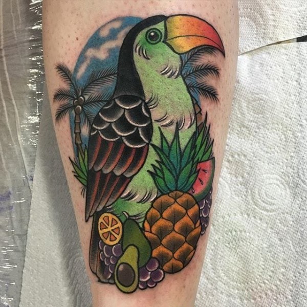 彩绘纹身图案-彩绘水彩的创意文艺霸气大嘴鸟纹身图案