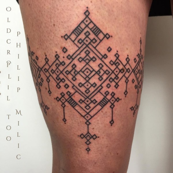 花腿纹身--一组大黑腿纹身图案作品欣赏