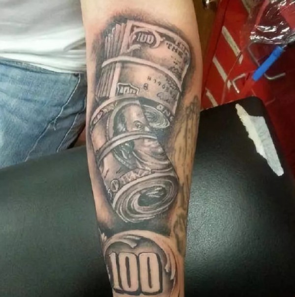 钞票纹身图案-随身带着钱的钞票创意纹身图片