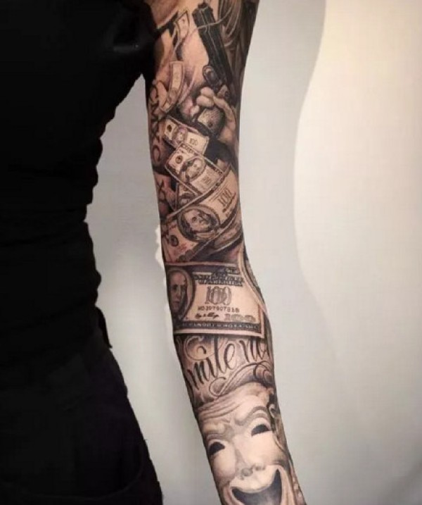 钞票纹身图案-随身带着钱的钞票创意纹身图片