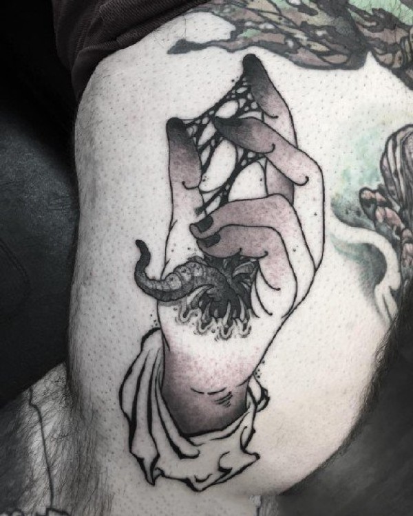 花腿纹身--一组大黑腿纹身图案作品欣赏