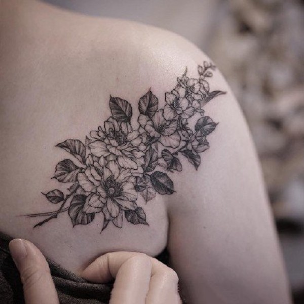 锁骨简约纹身_9张锁骨上的小清新简约黑灰纹身作品图案