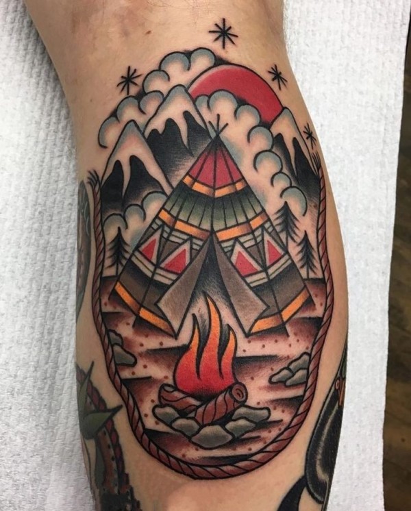 彩色风景纹身--一组几何图形+彩色的小风景纹身图案欣赏