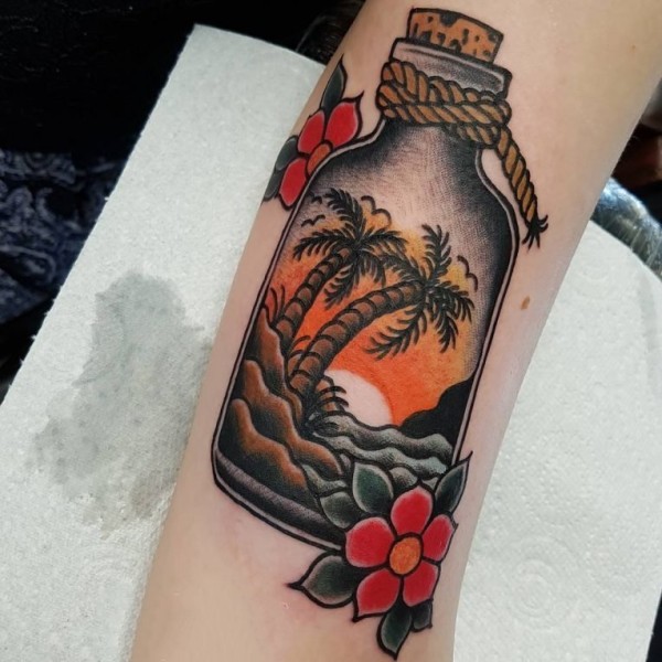 椰子树纹身图案-14张夏日气息十足的文艺精美椰子树纹身图案