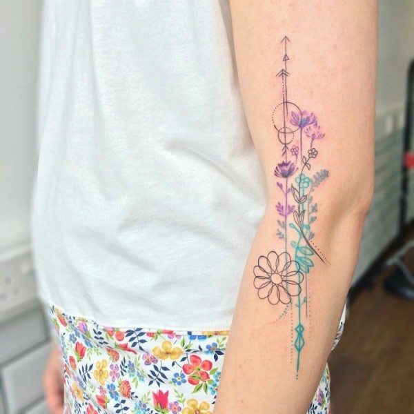 植物纹身图案-10张身体各个部位彩绘纹身风格花朵纹身图案