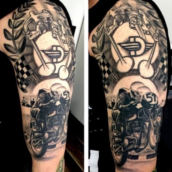 摩托车爱好者们身上帅气的摩托车纹身图案
