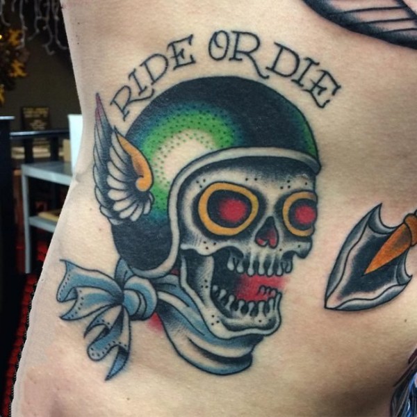 个性摩托车骷髅人手臂纹身图片