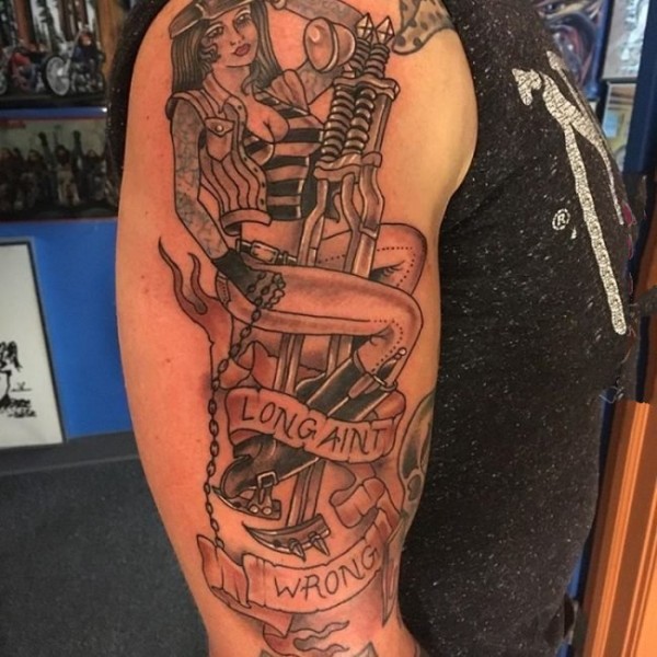 摩托车爱好者们身上帅气的摩托车纹身图案
