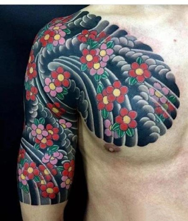 花朵纹身图案-20张身体各个部位传统彩绘纹身图案