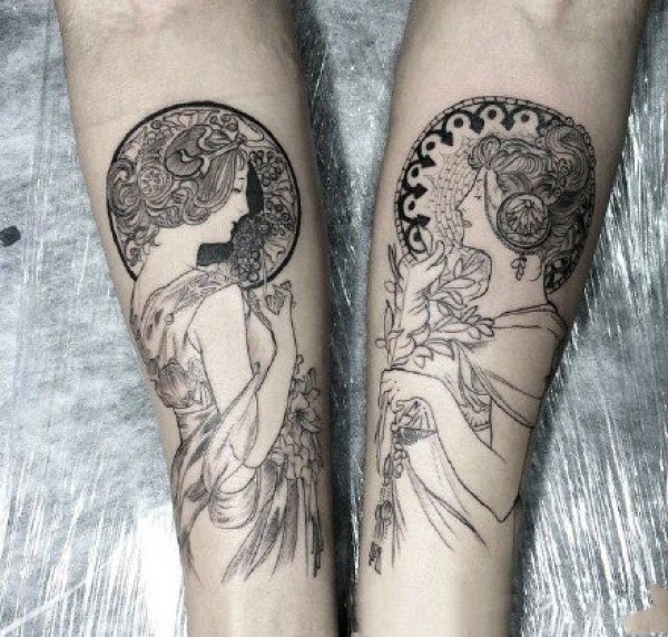 双子座纹身手稿_29张十二星座之双子座纹身图案手稿