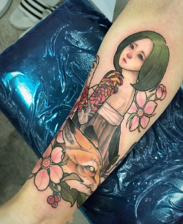 少女系列纹身图案-9张韩国纹身师Neondrug的创作少女系列纹身图片