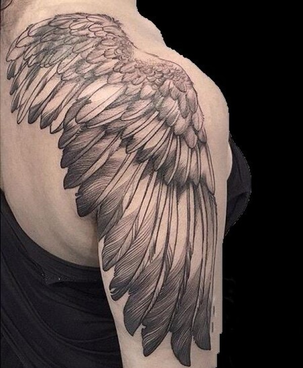 霸气翅膀:适合男性的一组霸气翅膀纹身图案9张