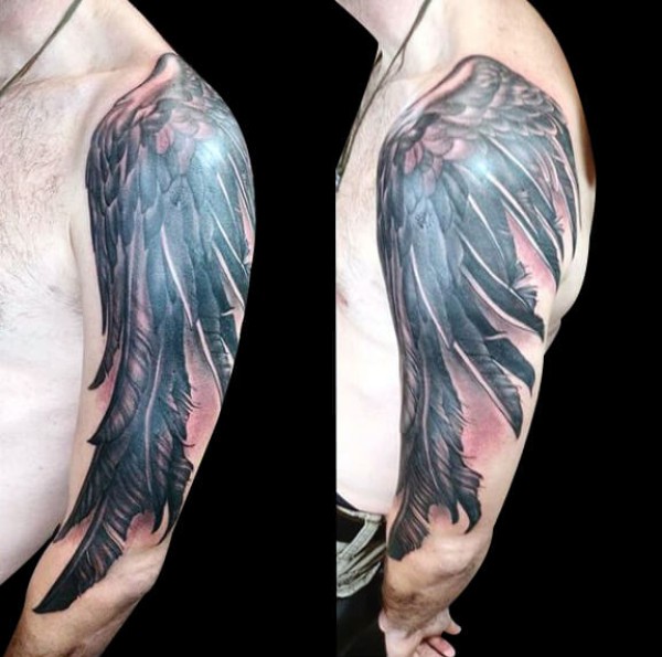 霸气翅膀:适合男性的一组霸气翅膀纹身图案9张