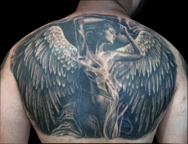天使翅膀纹身素材 男生背部天使翅膀纹身图案