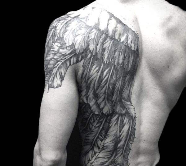 霸气翅膀:适合男性的一组霸气翅膀纹身图案9张