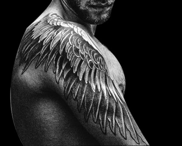 霸气翅膀:适合男性的一组霸气翅膀纹身图案9张