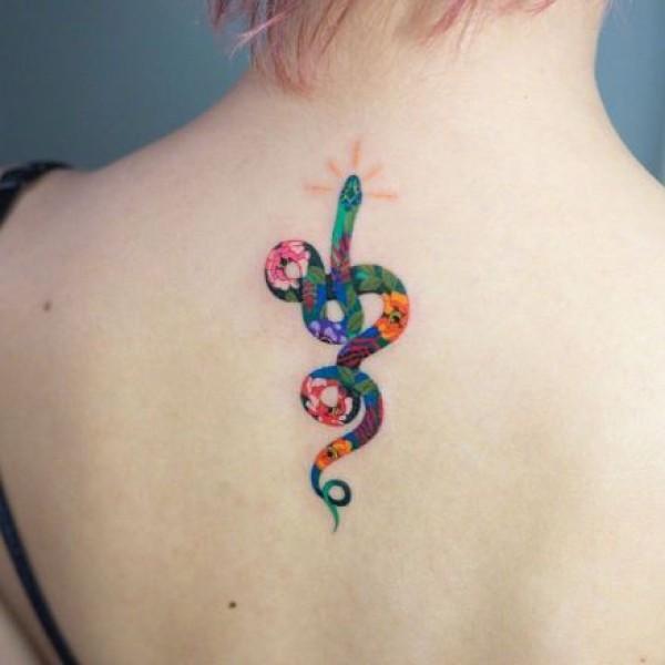 水彩蛇纹身图案-9张韩国首尔纹身艺术家Zihee的创意纹身图片