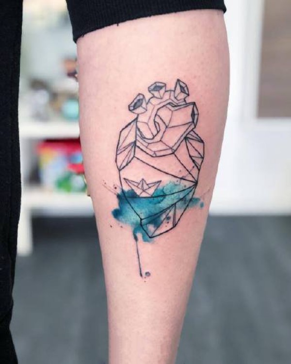 胳膊原创水彩心上钥匙纹身图案