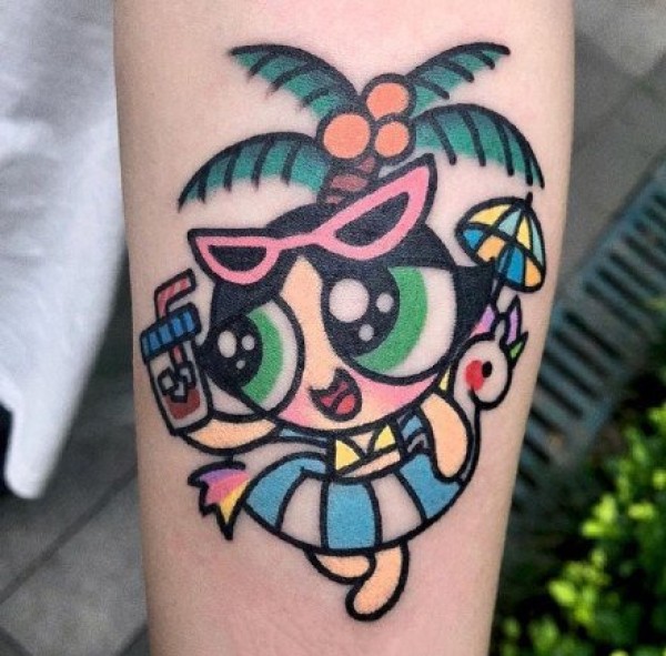 复古卡通红唇美女手臂纹身_卡通纹身图案大全_纹身图吧
