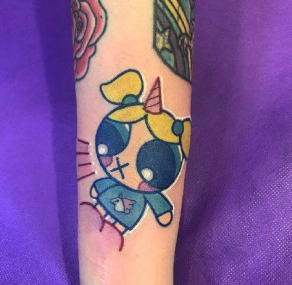复古卡通红唇美女手臂纹身_卡通纹身图案大全_纹身图吧