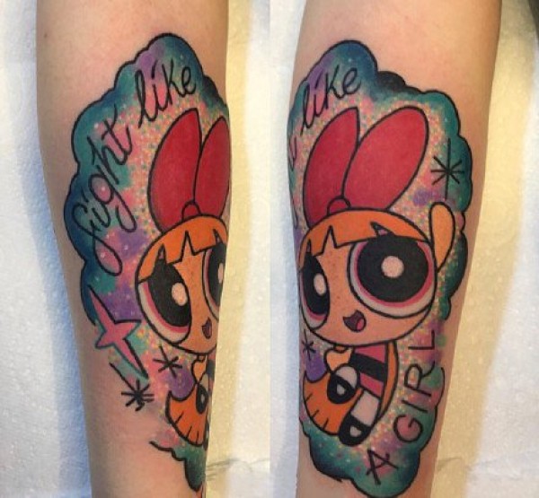 复古卡通红唇美女手臂纹身_卡通纹身图案大全_纹身图吧