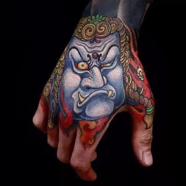 手背纹身--一组霸气满手背彩色纹身图案作品