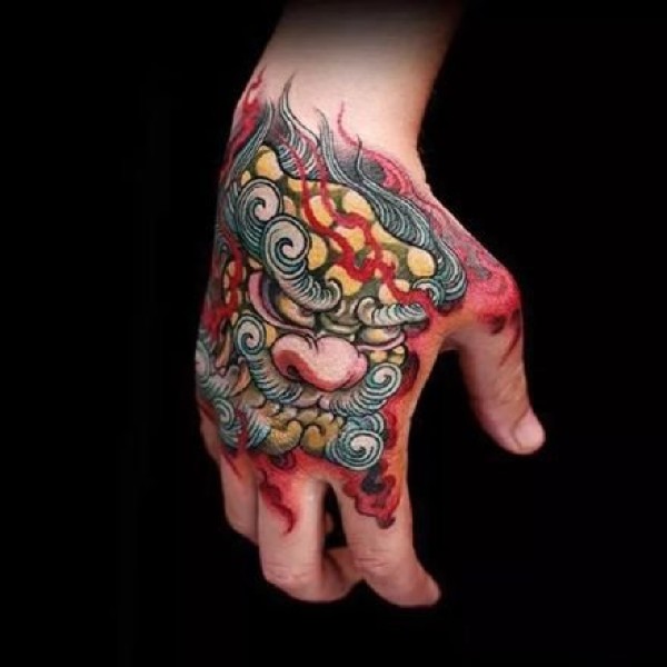 手背纹身--一组霸气满手背彩色纹身图案作品