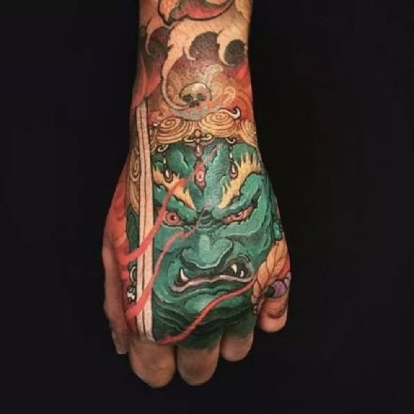 手背纹身--一组霸气满手背彩色纹身图案作品