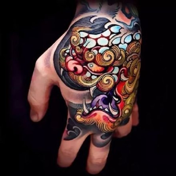 手背纹身--一组霸气满手背彩色纹身图案作品