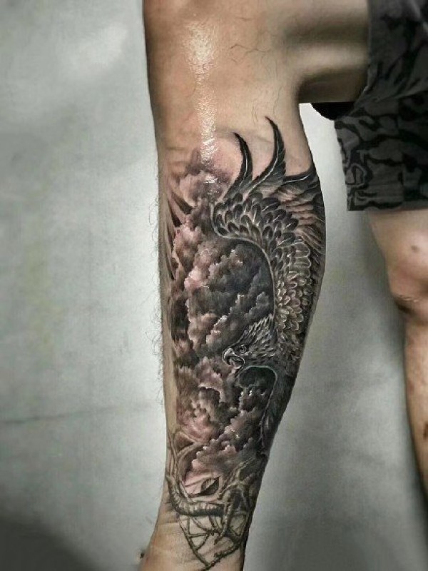 男士胳膊黑灰纹身--一组9张男性好看的手臂黑灰纹身图案作品欣赏
