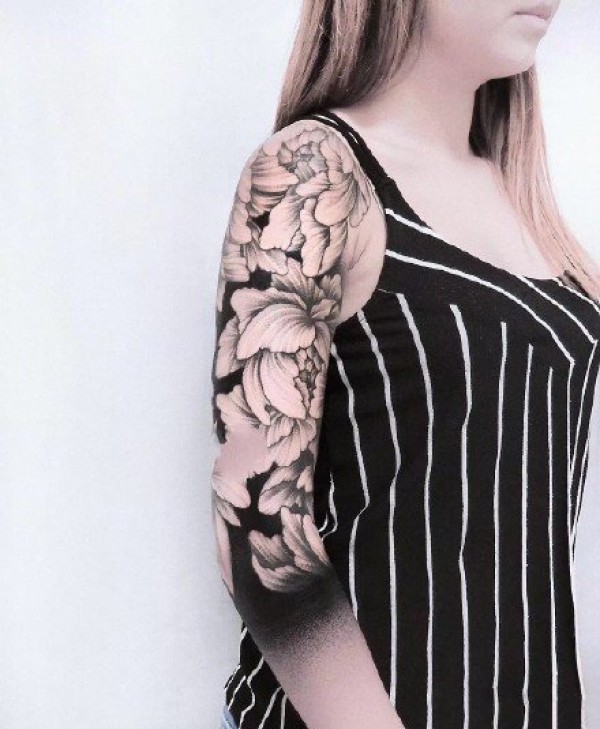 欧美花臂纹身_22张霸气黑灰欧美大黑花臂纹身图案作品图片