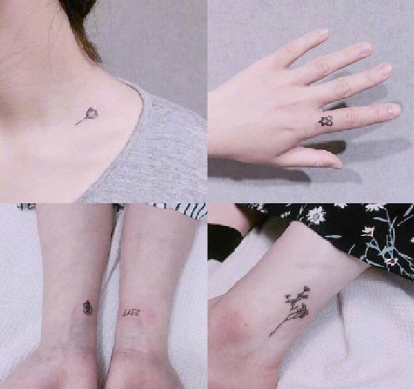 一组适合闺蜜姐妹情侣的简约手臂小清新纹身图案