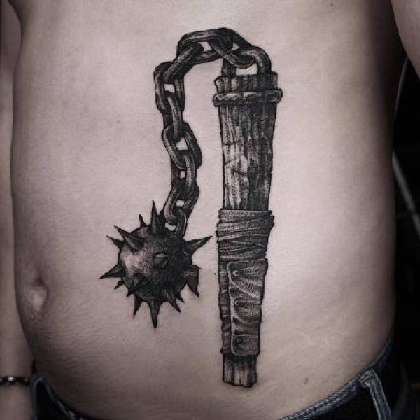 点刺钝器物品纹身--一组黑灰点刺刀斧匕首等石器工具的纹身图案