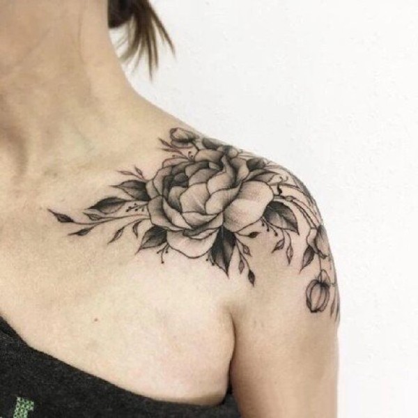 女性肩花纹身---一组女手肩膀上的花朵纹身图案图片
