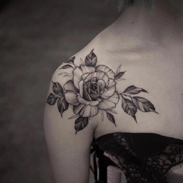女性肩花纹身---一组女手肩膀上的花朵纹身图案图片