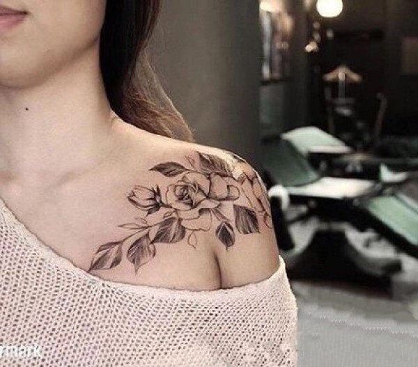 女性肩膀上多款漂亮的花朵纹身图案