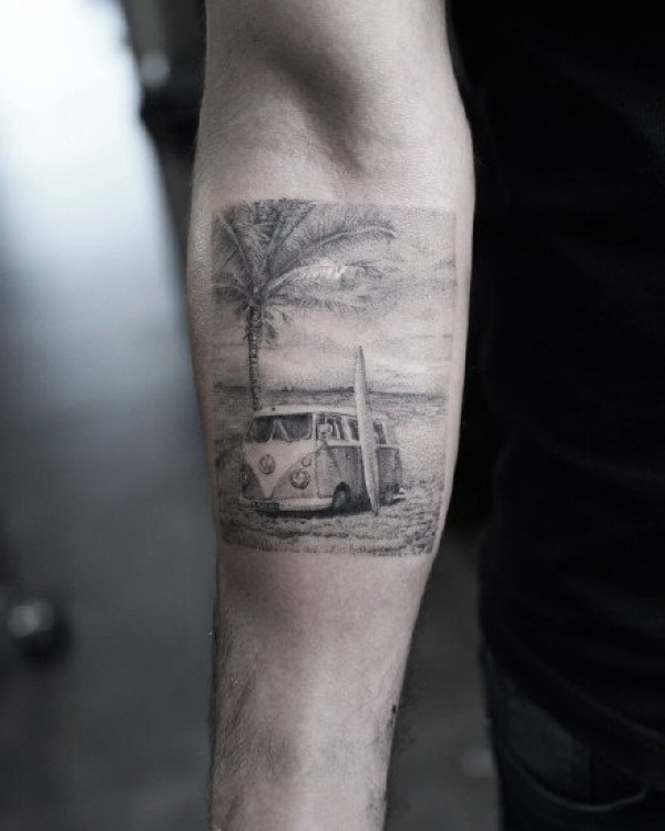 纹身照片 男生手臂上彩色的照片纹身图片
