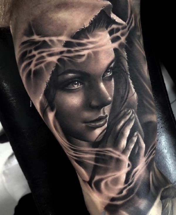 适合小臂上好看的黑灰纹身图案欣赏