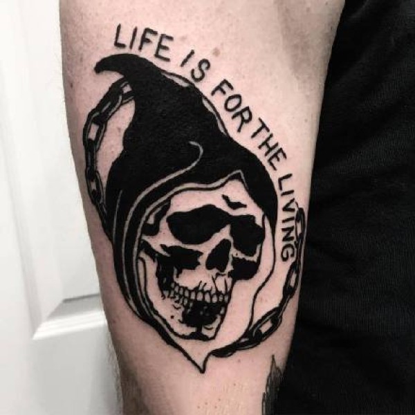 黑灰色玫瑰花和骷髅头纹身图片手稿