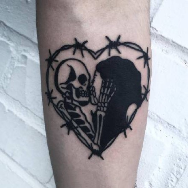 心脏纹身图案 女生手臂上黑灰纹身心脏纹身图案
