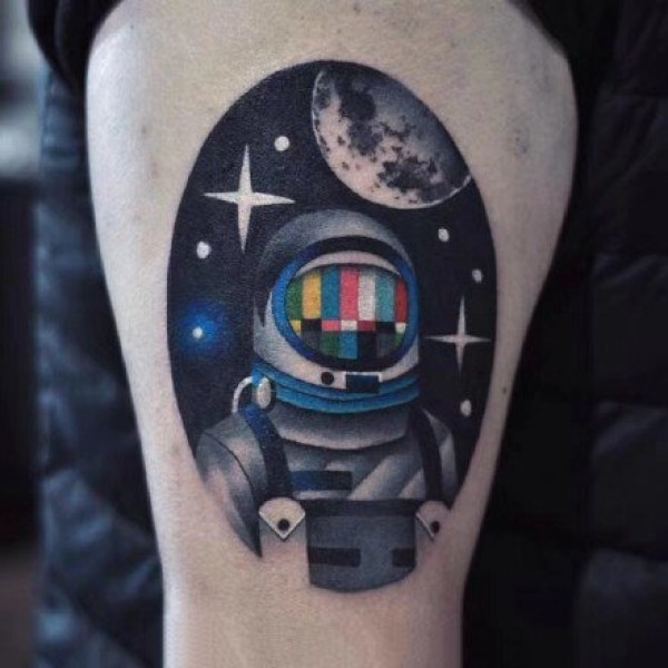 宇航员纹身图案--9张彩色宇航员星空星球宇宙纹身作品
