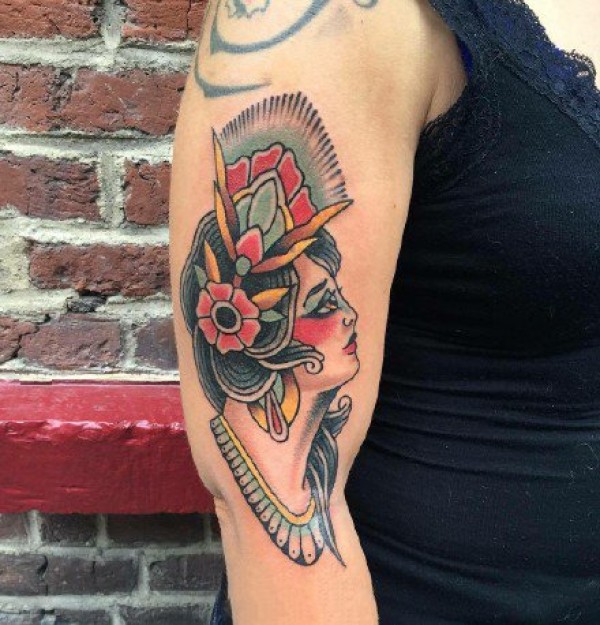 欧美school女郎肖像彩色纹身图案作品9张