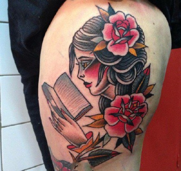 欧美school女郎肖像彩色纹身图案作品9张