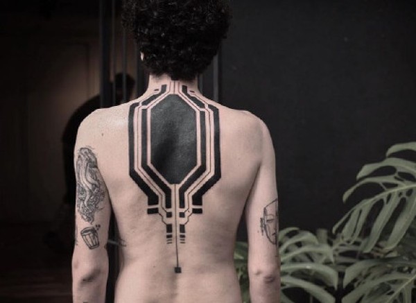 科技感满满的黑色图腾--新西兰纹身艺术家Georgie Williamsker纹身作品