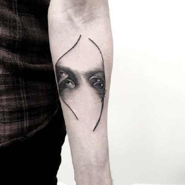 人脸线条纹身:简约抽象风格的一组线条人脸纹身图案