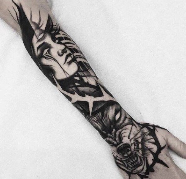 适合小臂上好看的黑灰纹身图案欣赏